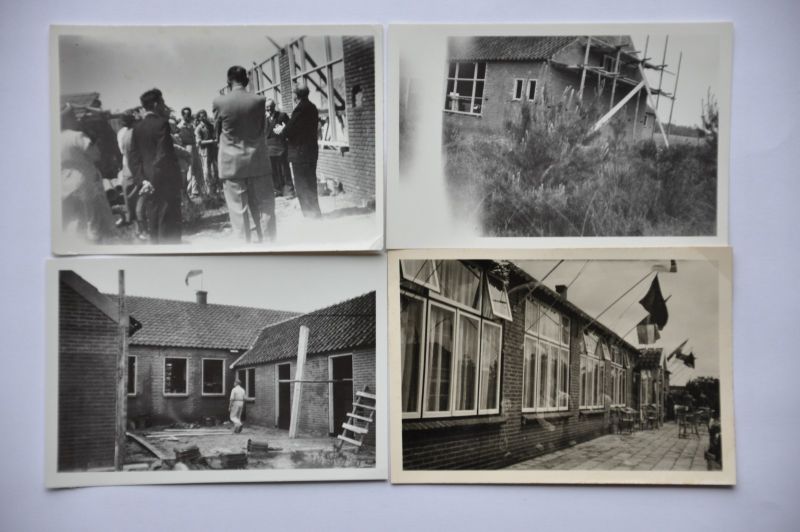 De eerste steen met prekende pastoor, het gebouw nog in de steigers, de feestelijke opening